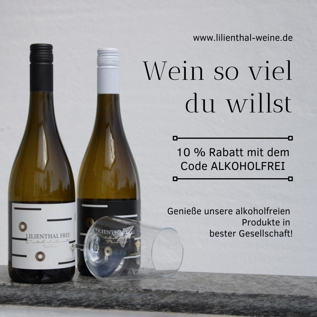 Bei Lilienthal Weine bekommst du jetzt 10 % auf alle alkoholfreien Weine – weil Anstoßen auch ohne Alkohol Freude macht! 🥂