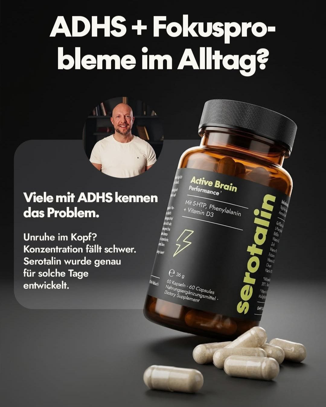 Tobias, Gründer von Serotalin, hatte selbst ADHS – und wollte kein Ritalin, sondern etwas Natürliches. Also entwickelte er sich seine eigene Lösung! Das Ergebnis: Active Brain Performance!
