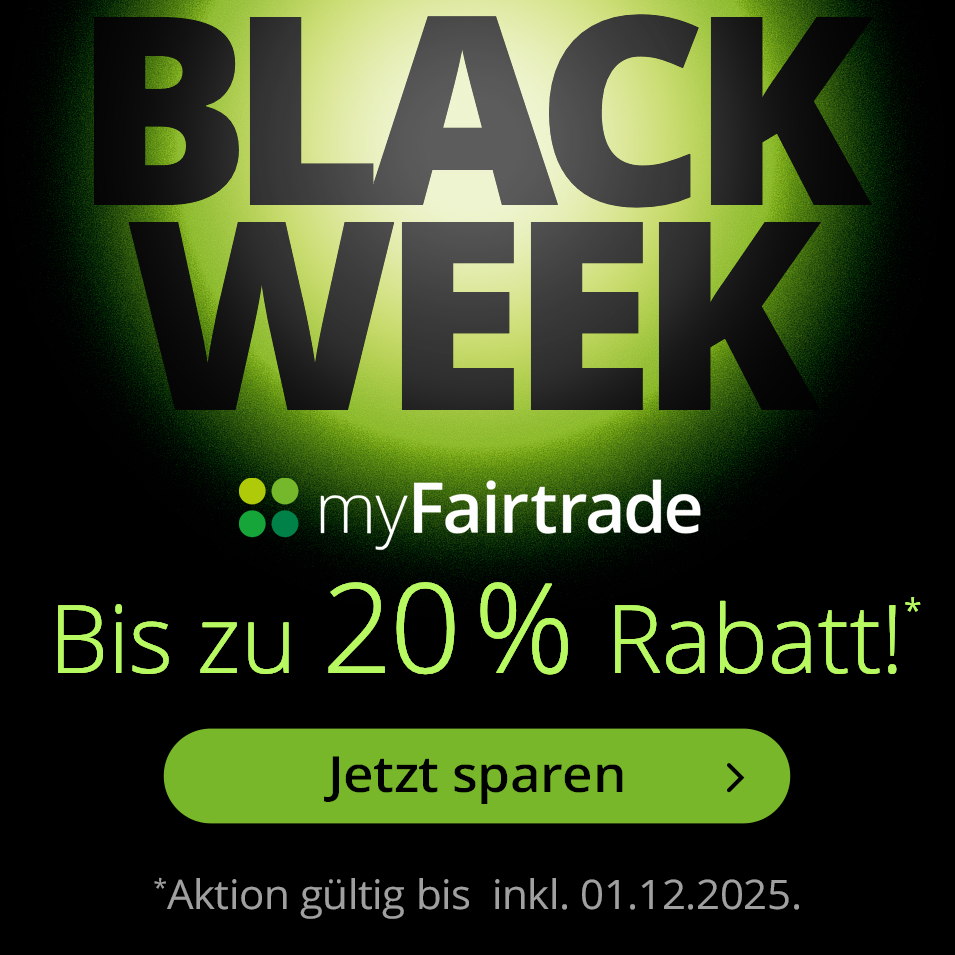 Die Black Week startet bei myFairtrade mit bis zu 20% Rabatt auf deine Lieblingsprodukte! đ€