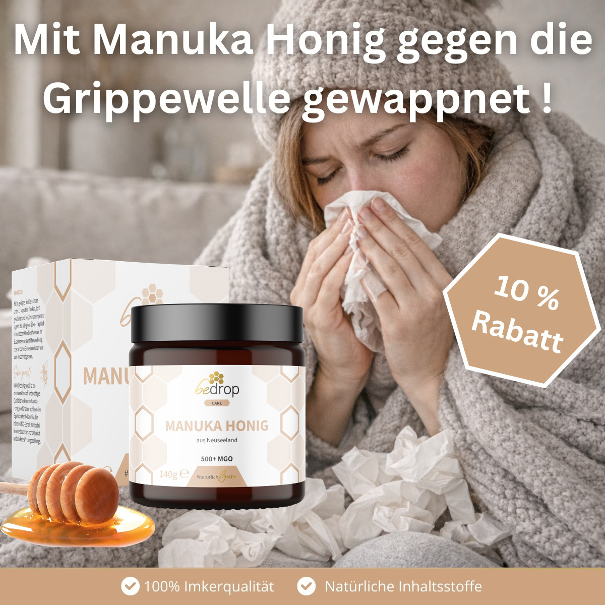 Bedrop begleitet Dich mit Manuka Honig ganz natürlich durch die Grippe- und Erkältungszeit! 🍯