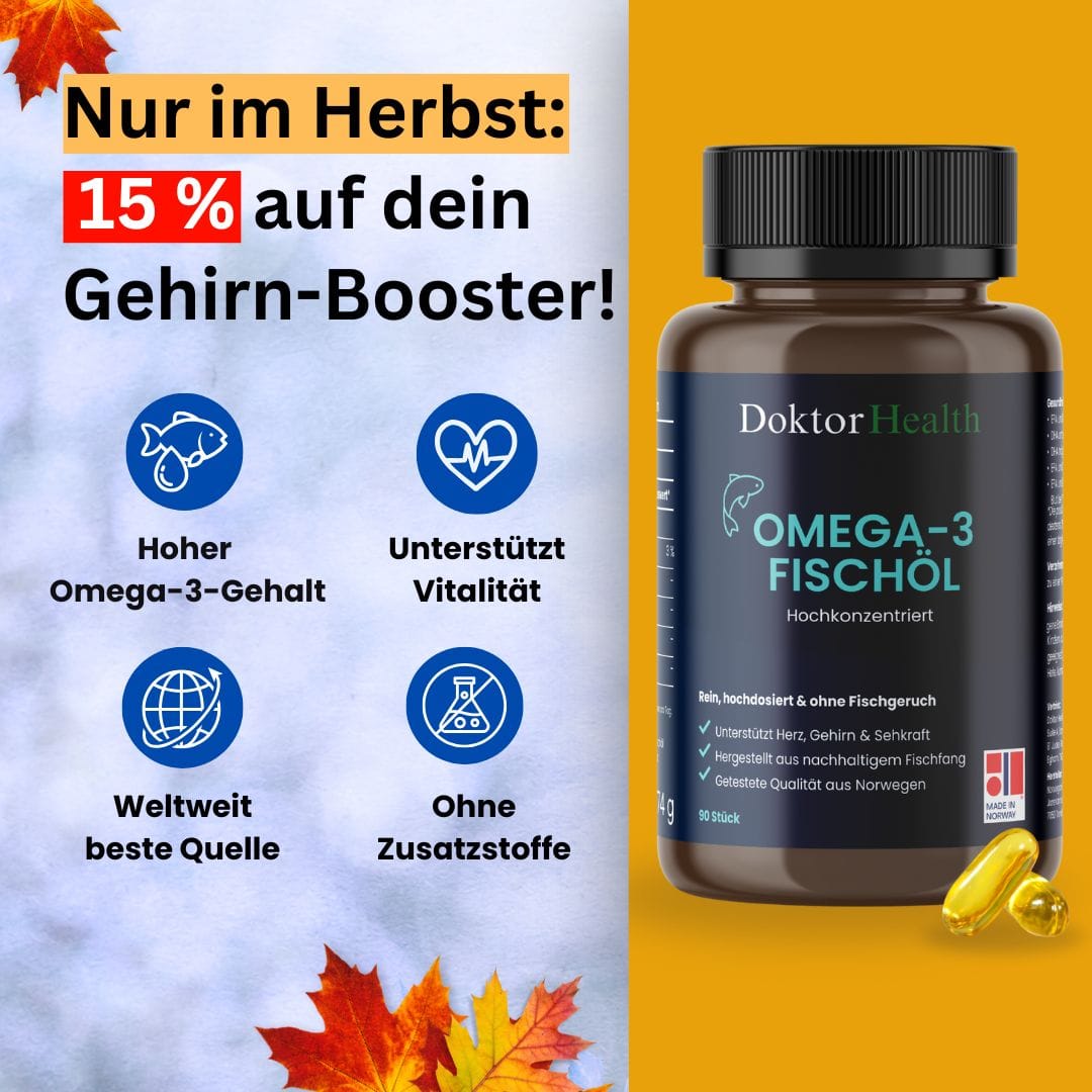 Bei Doktor Health gibt es jetzt 15% Rabatt auf die hochkonzentrierten Omega-3 Fischöl-Kapseln für mehr Fokus und starke Nerven!