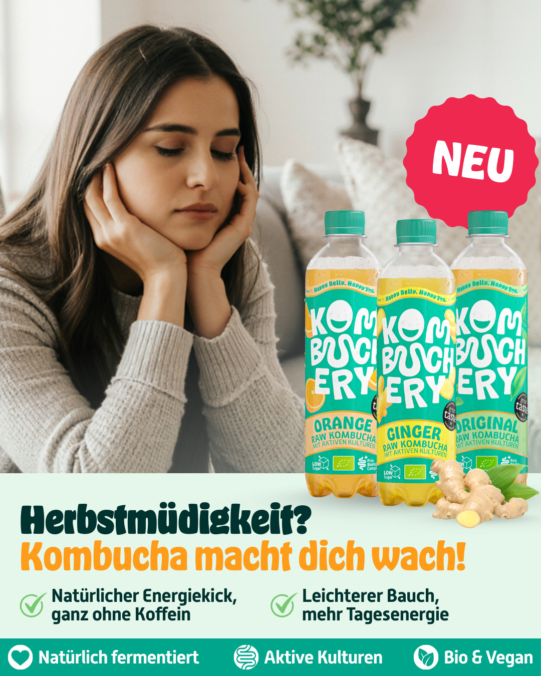 Mit Kombucha bringst du auf natürliche Weise mehr Energie in den Herbst - ganz ohne Koffein! 💛