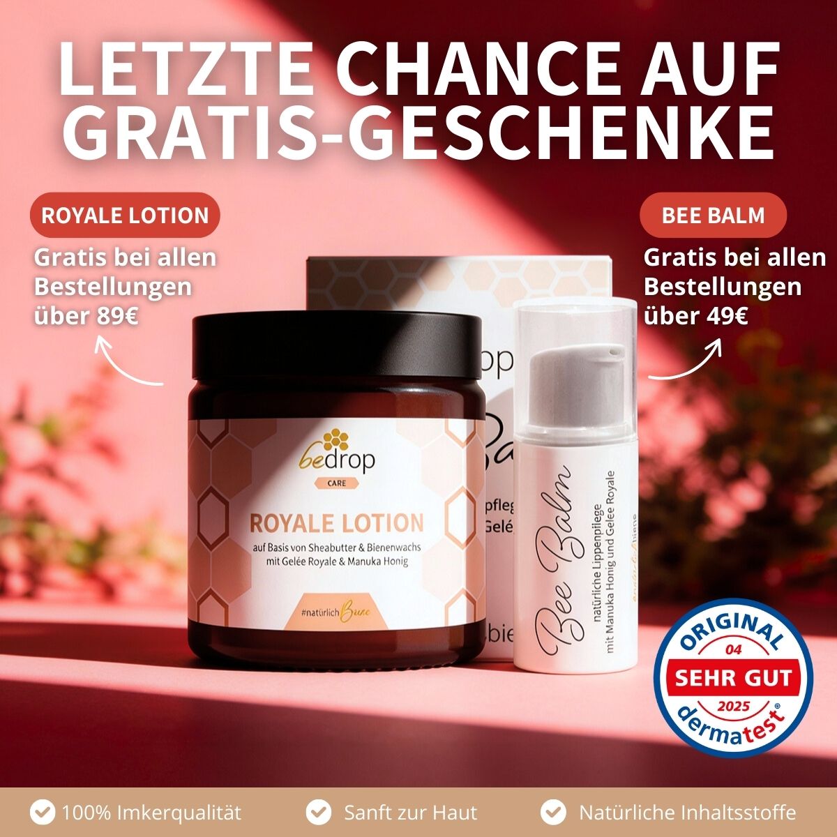 Das Mindesthaltbarkeitsdatum des BeeBalms endete am 15.12.2025. Die Qualität ist weiterhin 100% einwandfrei. Regulär darf bedrop das Produkt nicht mehr verkaufen – wegwerfen kommt aber nicht infrage. Nachhaltigkeit statt Verschwendung. 🐝