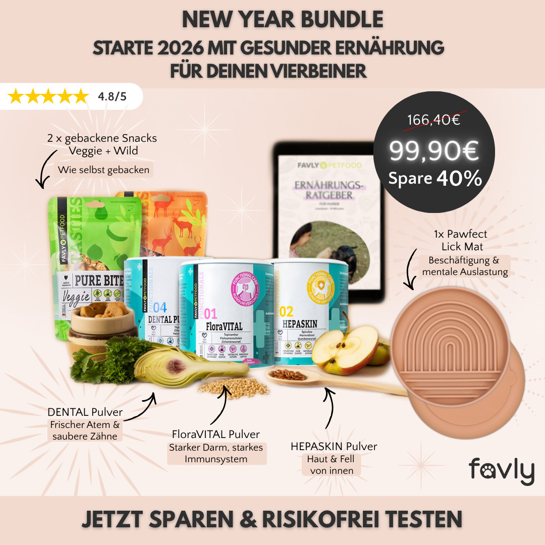 Mit 40 % Rabatt ins neue Jahr – das NEW YEAR BUNDLE von FAVLY für Deinen Vierbeiner! 🎆