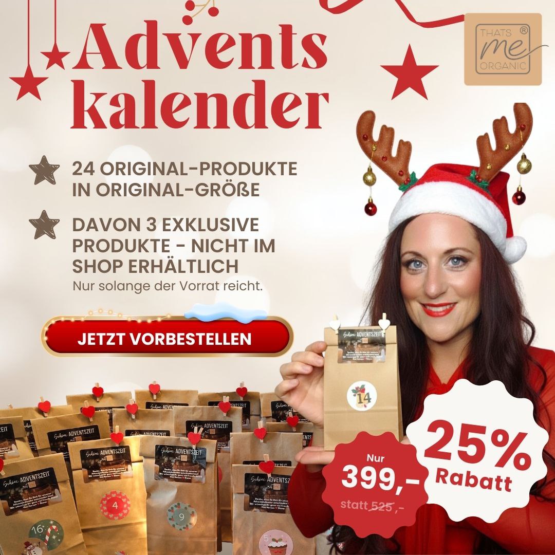 🎄Ab jetzt vorbestellbar: Entdecke den Thats me organic Adventskalender mit 24 Naturkosmetik-Highlights in Originalgröße! Jetzt um 25% reduziert! 🎁