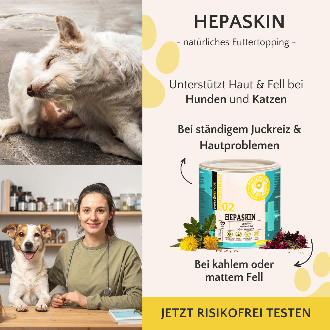 Mit HEPASKIN von FAVLY unterstützt du die Hautgesundheit deines Hundes von der Wurzel an! 🐶