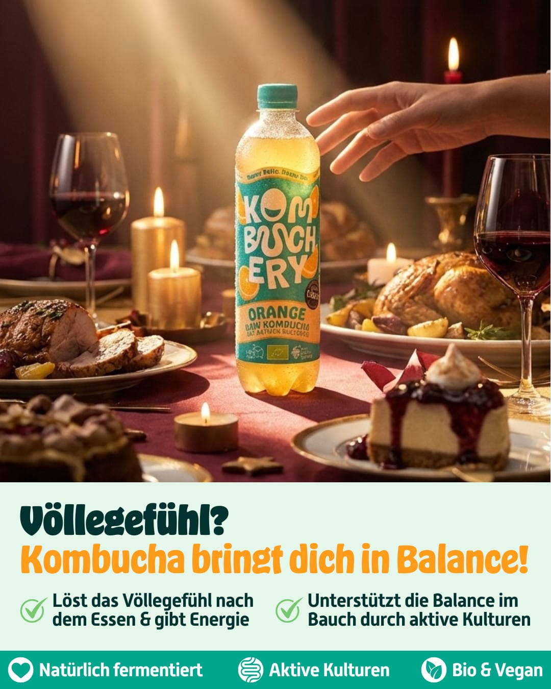 Kombuchery is your natural support for digestion & well-being – living cultures bring balance to your belly! 🎄✨