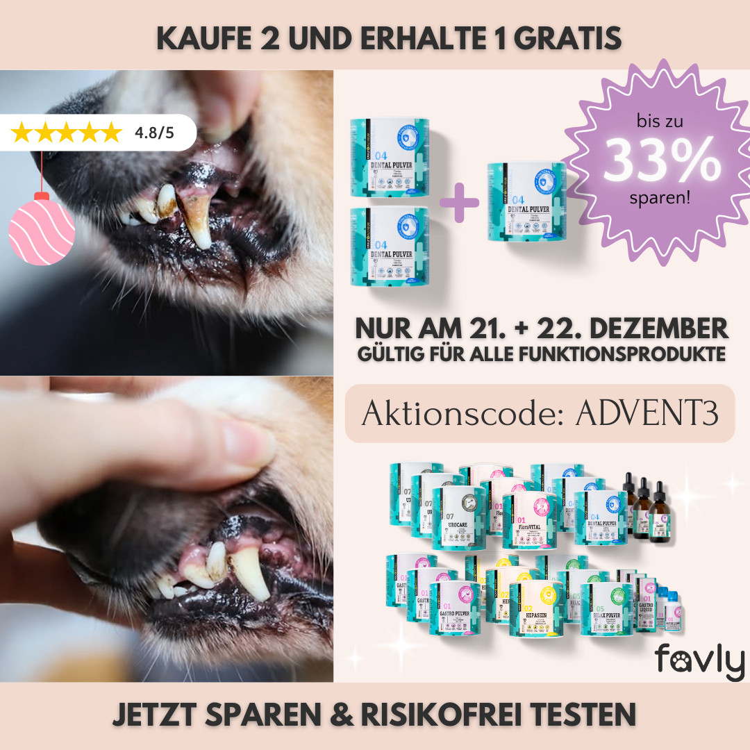On December 21st and 22nd, Favly has a special Christmas offer waiting for you: Buy 3 Functionals and get 1 FREE! 🐶