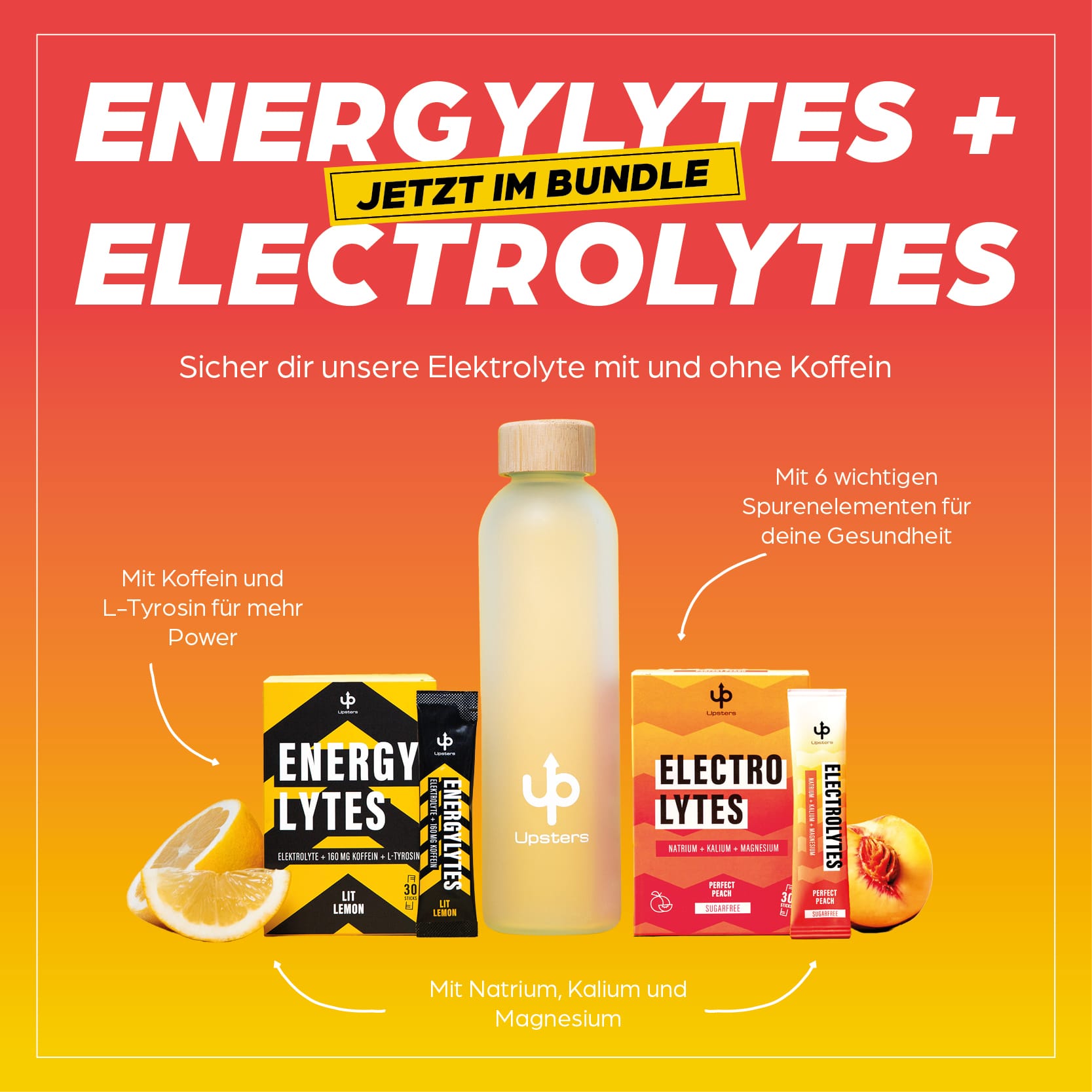 Fuel your day with energy and save 25% with the Upsters bestseller Hydration & Energy Bundle – featuring electrolyte powder and energy powder!