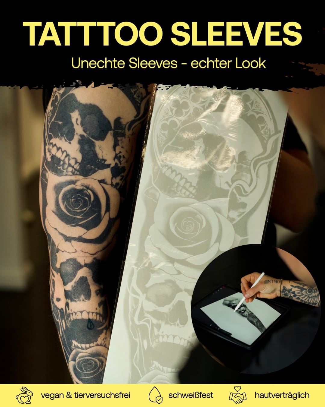 Inkster brings realistic 2-week tattoo sleeves to your skin – sweatproof, vegan, and featuring exclusive designs by tattoo artist Robert Klie! 💪
