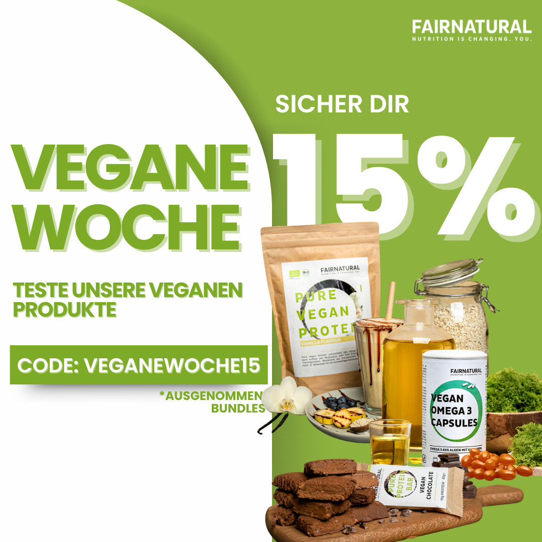 Enjoy naturally, live mindfully & stay sustainably strong! ✨ Whether it's protein powder, superfoods or essential nutrients – during Vegan Week, you'll find everything to keep you fit, happy and balanced – 100% vegan and made with love! 💚