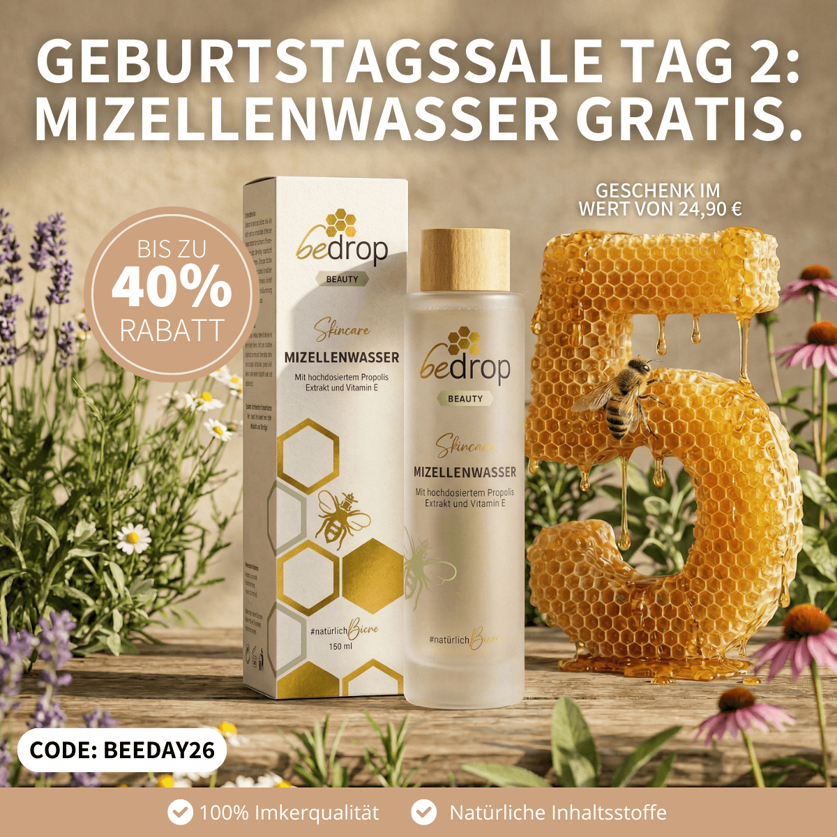 ๐ Day 2 of the bedrop Birthday Deals โ save up to 40%! Today, the micellar water worth โฌ24.90 is waiting for you as a free gift! ๐
