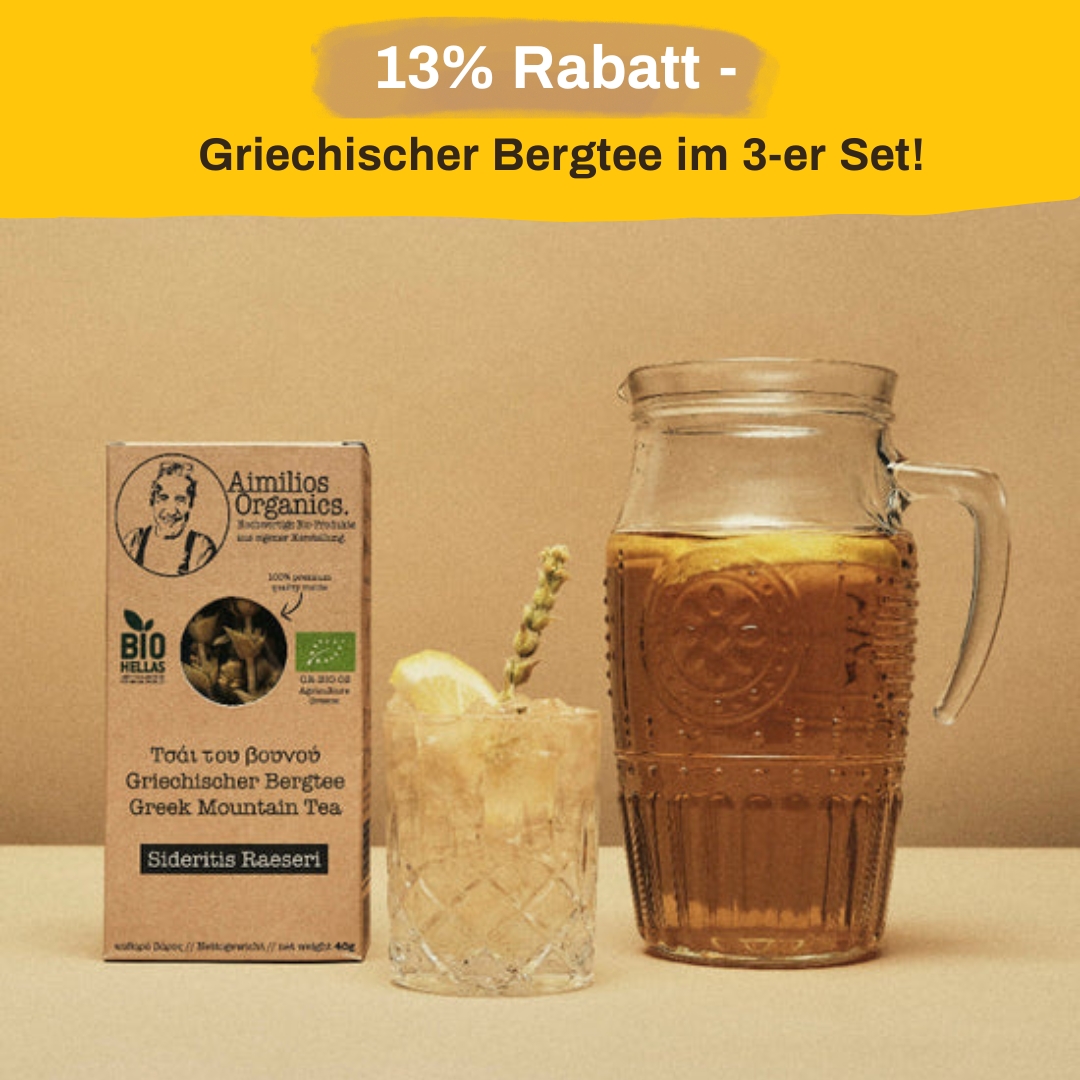 Tired in the evening, but your mind still racing? At Aimilios Organics, you save 13% on the Greek mountain tea set – only until 25.02.2026!