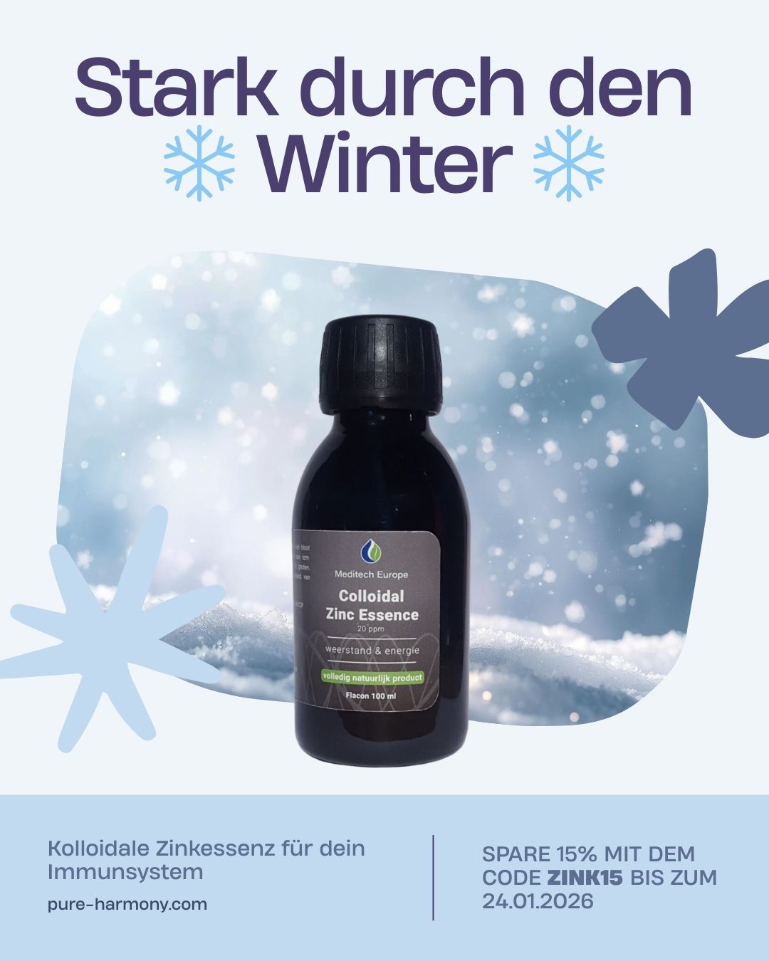 Get 15% off now until January 24 on Pure Harmony’s colloidal zinc essence – your daily companion this winter!