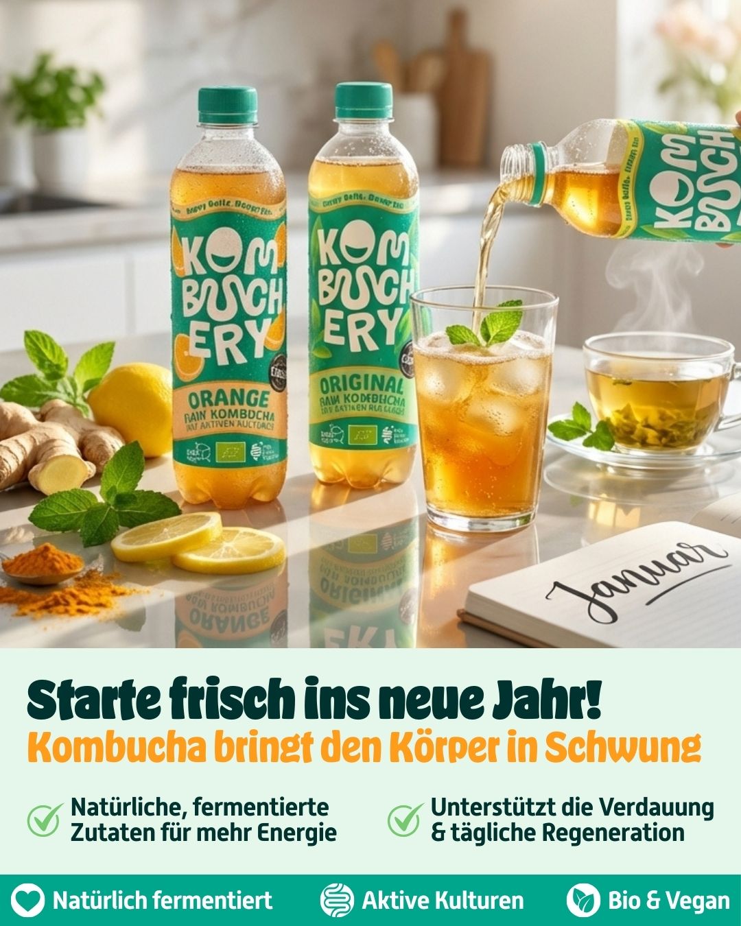 Time to reset with Kombuchery – your daily kick for a light and balanced start to everyday life. Naturally fermented ingredients, living cultures, and organic acids work exactly where things often get off track after the holidays: your gut feeling and daily energy!