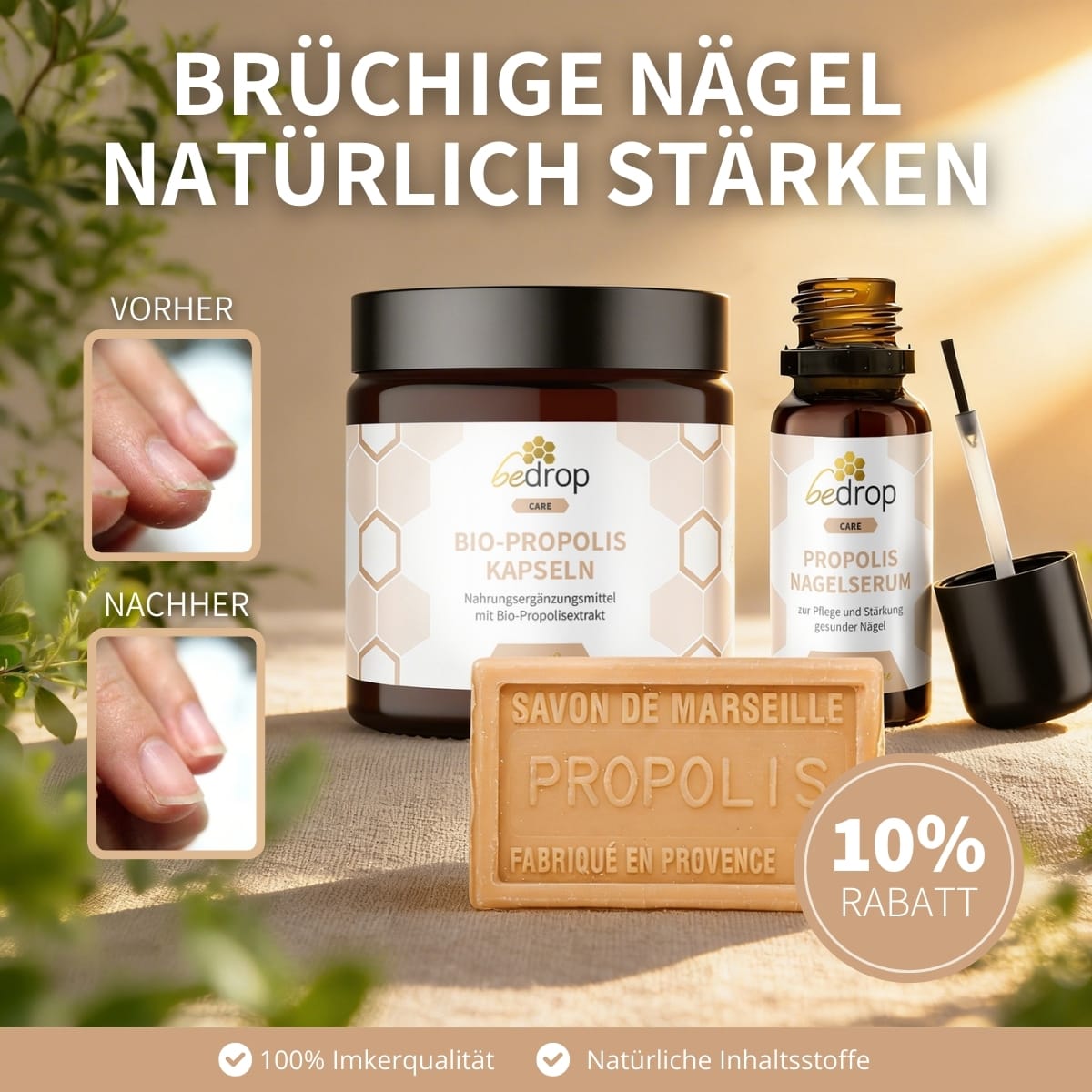 The bedrop Nail Care Set supports your nails from the inside and out – with the natural power of propolis for healthy, resilient nails!