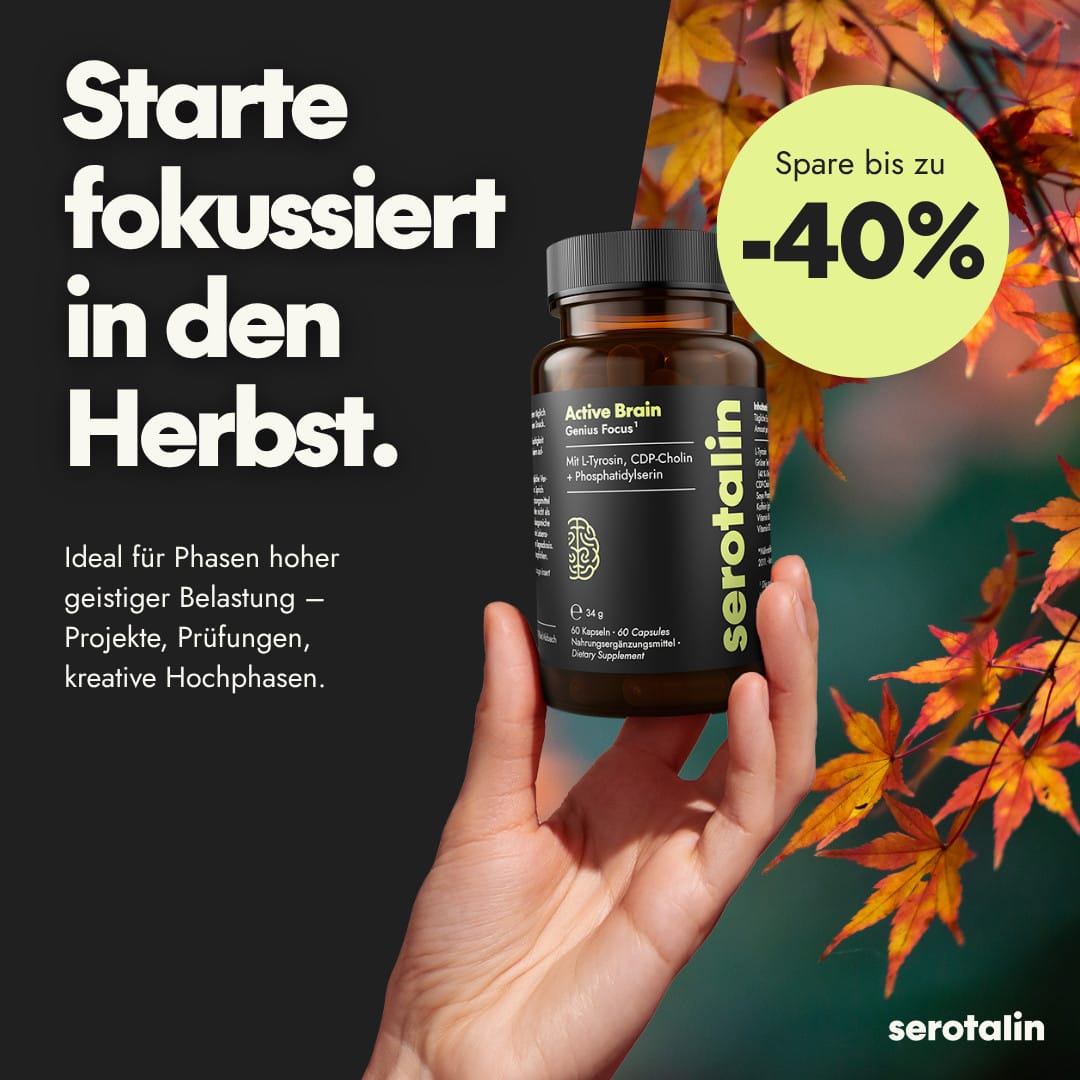 🧠 Kick off autumn with razor-sharp focus thanks to Active Brain Genius Focus¹ by Serotalin! Save up to 40% now!