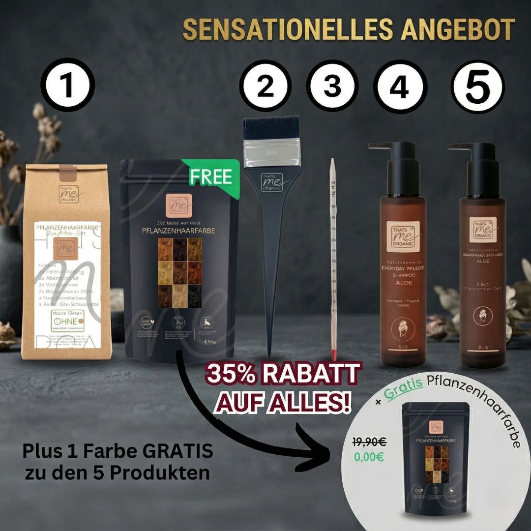 Thats me Organic proves with the Plant Hair Dye Switch Complete Set that coloring your hair doesn't have to smell like a chemistry lab — and right now for just €69.00 instead of €106.50!