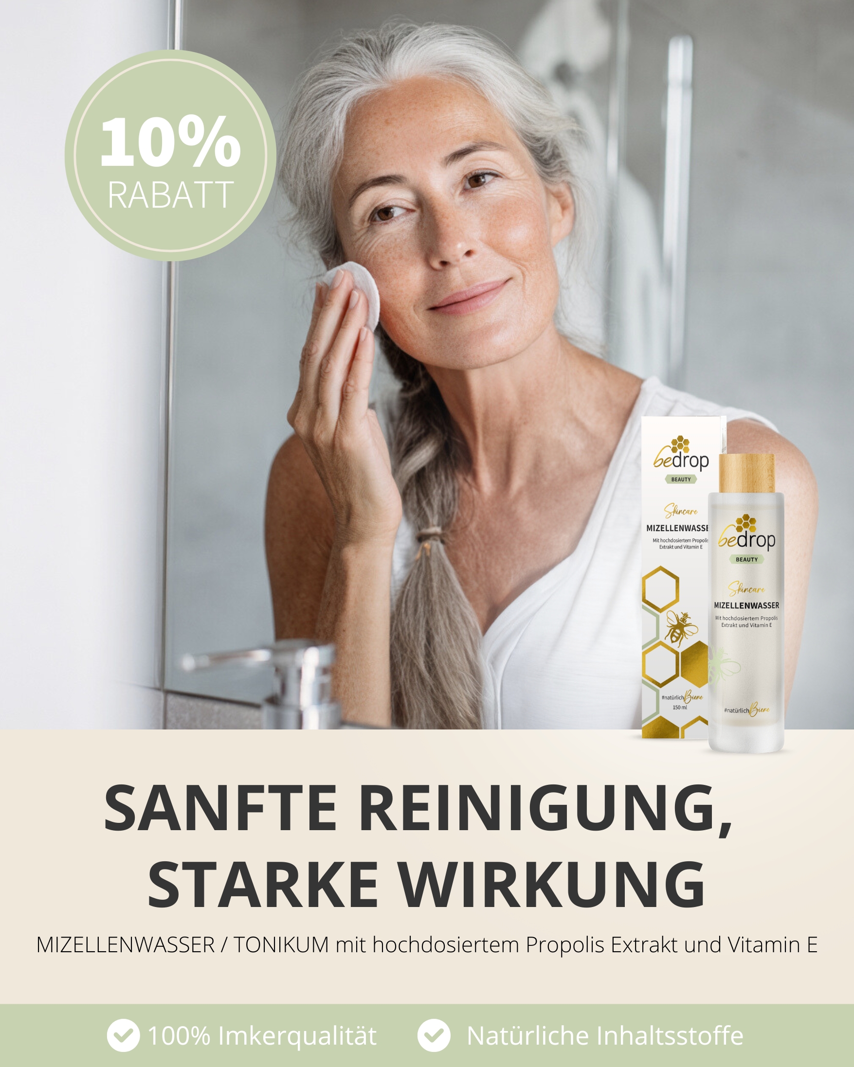 The bedrop micellar water with propolis gently cleanses your pores and protects them from new impurities! 🐝
