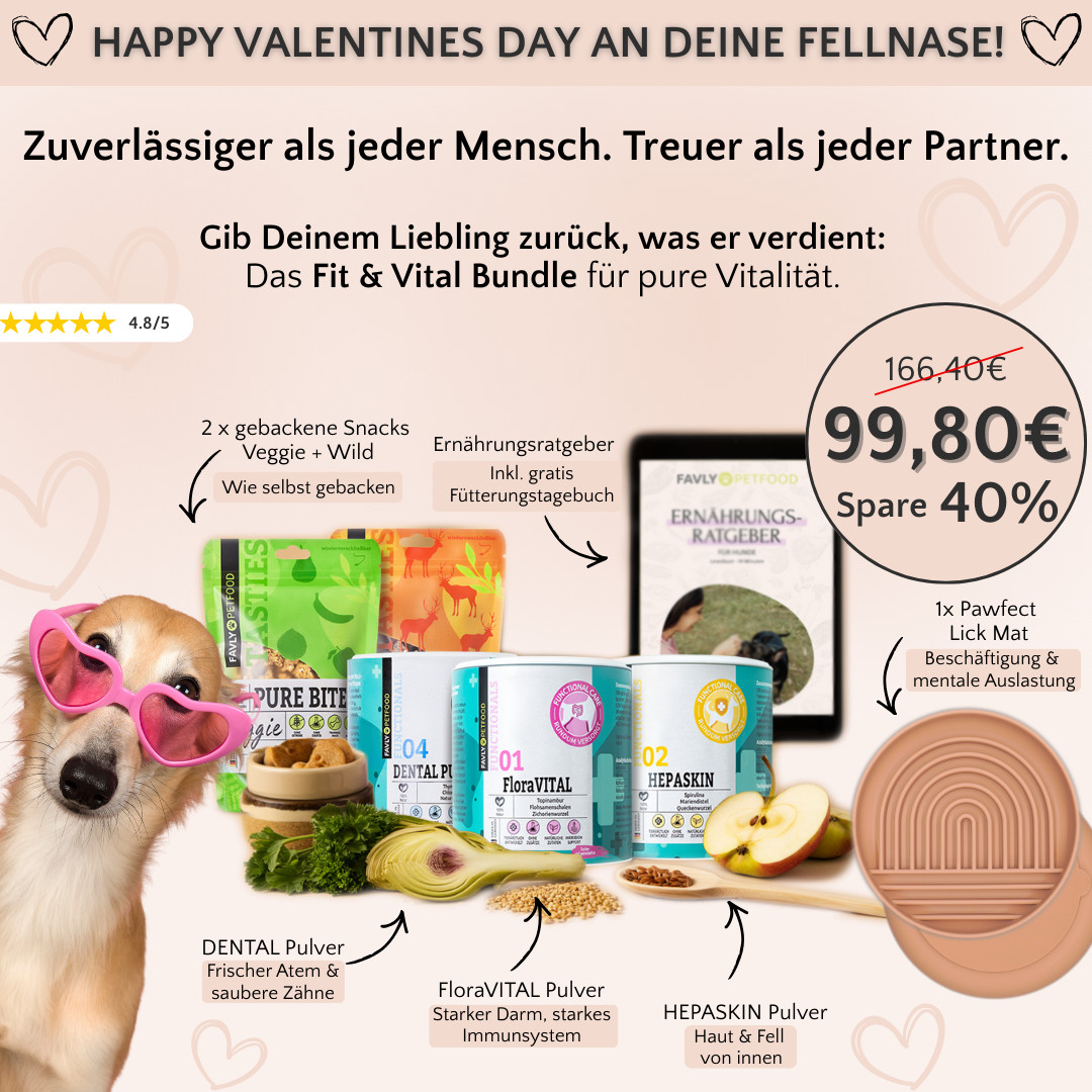 The big FAVLY Petfood Valentine’s Deal gives your four-legged friend more vital years! Save 40% on the Fit & Vital Bundle until 15/02! ❤️ 🐾