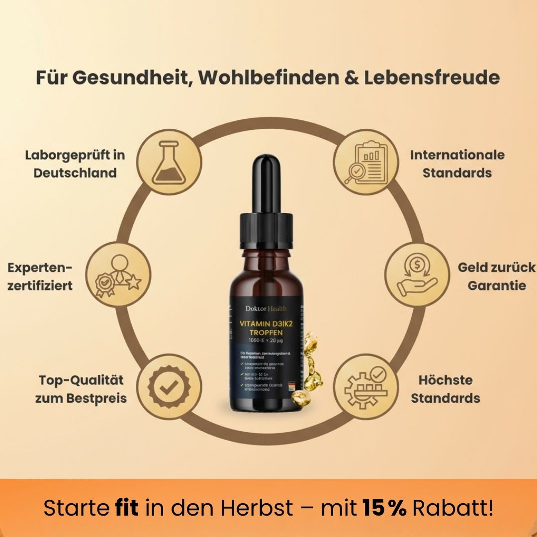 Support your body this fall with Vitamin D3 + K2 drops from Doktor Health – now 15% off!