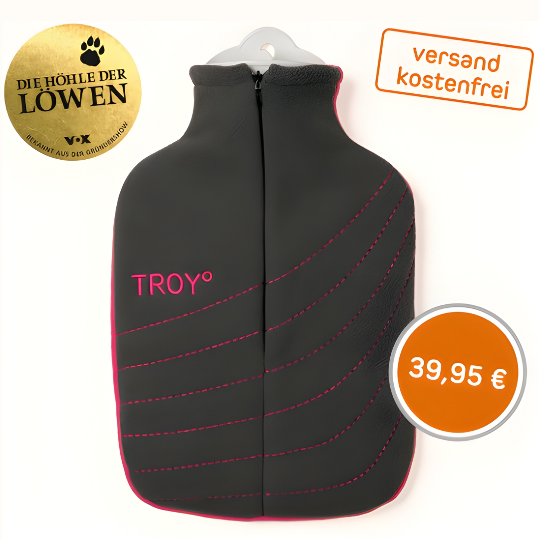 TROY° has the solution for cold nights: the innovative hot water bottle that releases warmth gently and lasts extra long!