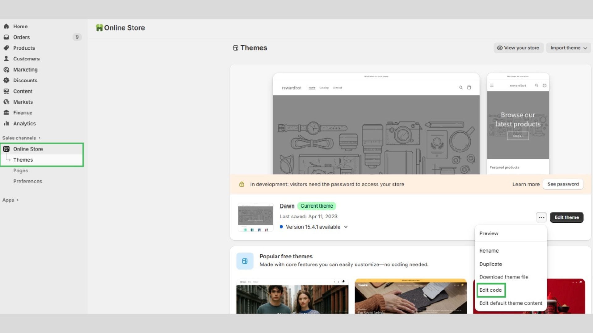 Click on Online Store → Themes in the left menu.