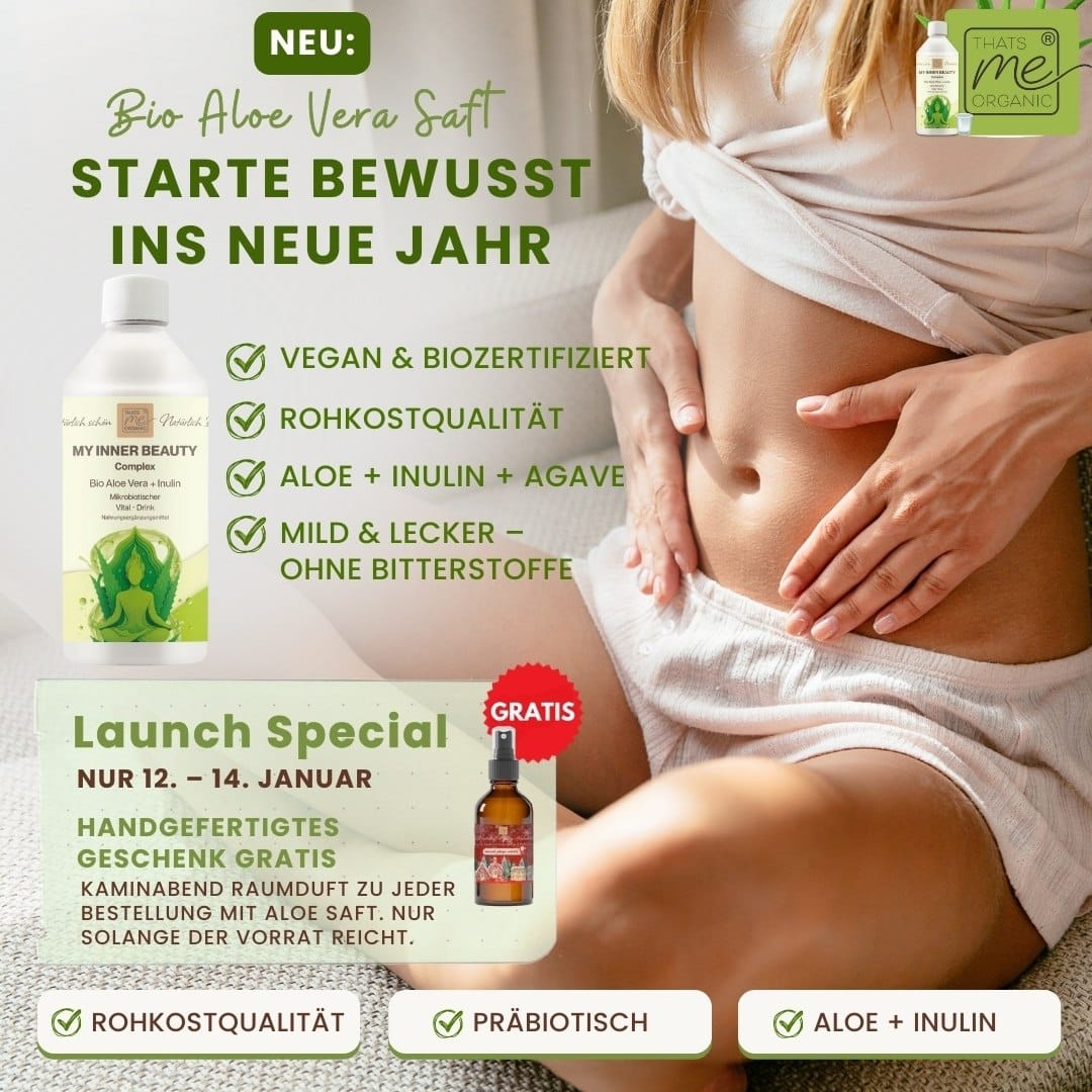 New at TMO: Organic Aloe Vera Juice! To celebrate the launch, you'll get the handcrafted winter room spray “Fireside Evening” for FREE!