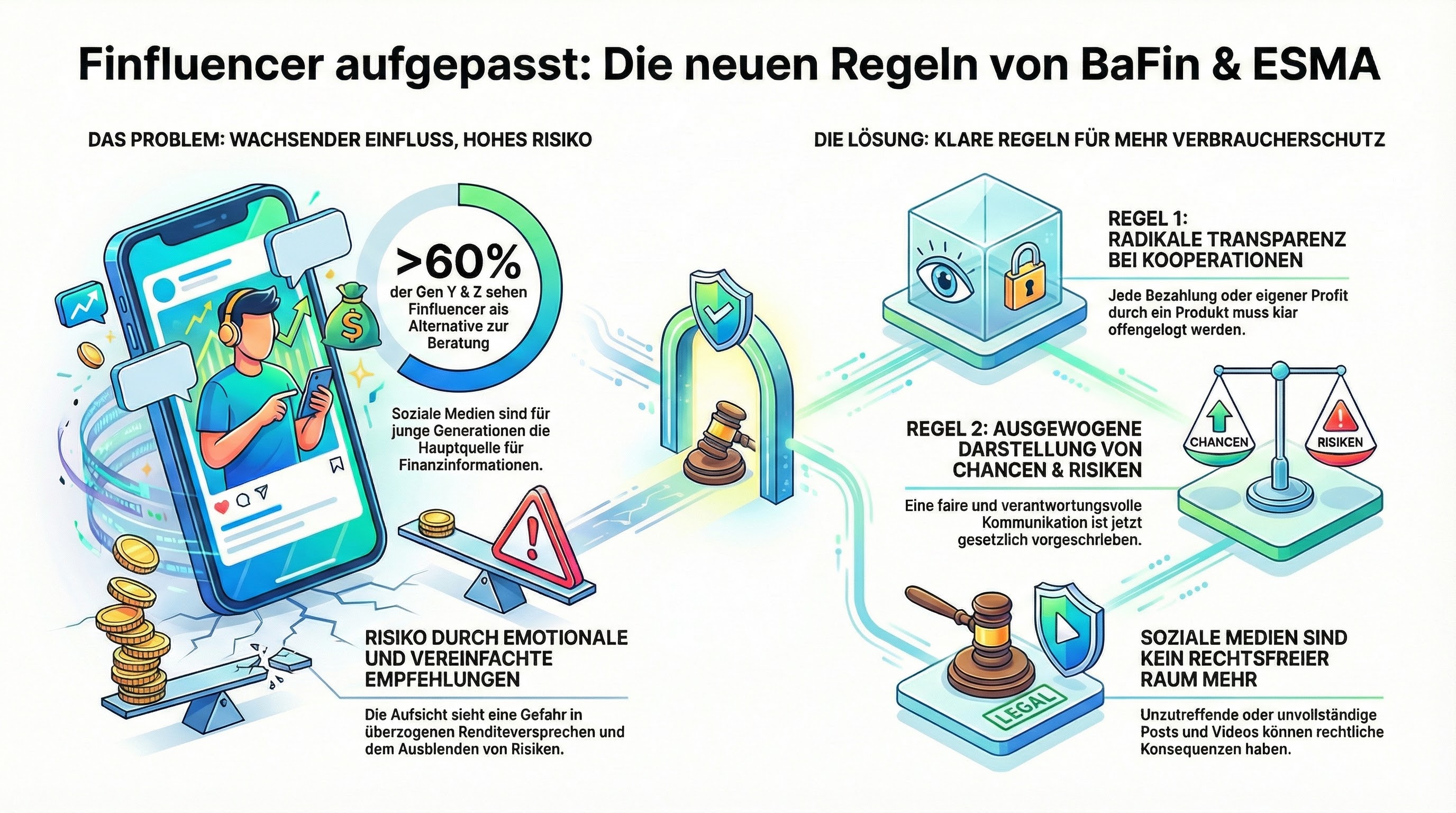 Die Wild-West-Zeiten sind vorbei: Die BaFin und die ESMA nehmen Finfluencer jetzt an die kurze Leine. Wir haben einen aktuellen Bericht des Versicherungsboten für euch analysiert. Erfahrt hier, warum Transparenz jetzt eure wichtigste Währung ist und wie ihr rechtssicher Geld verdient.