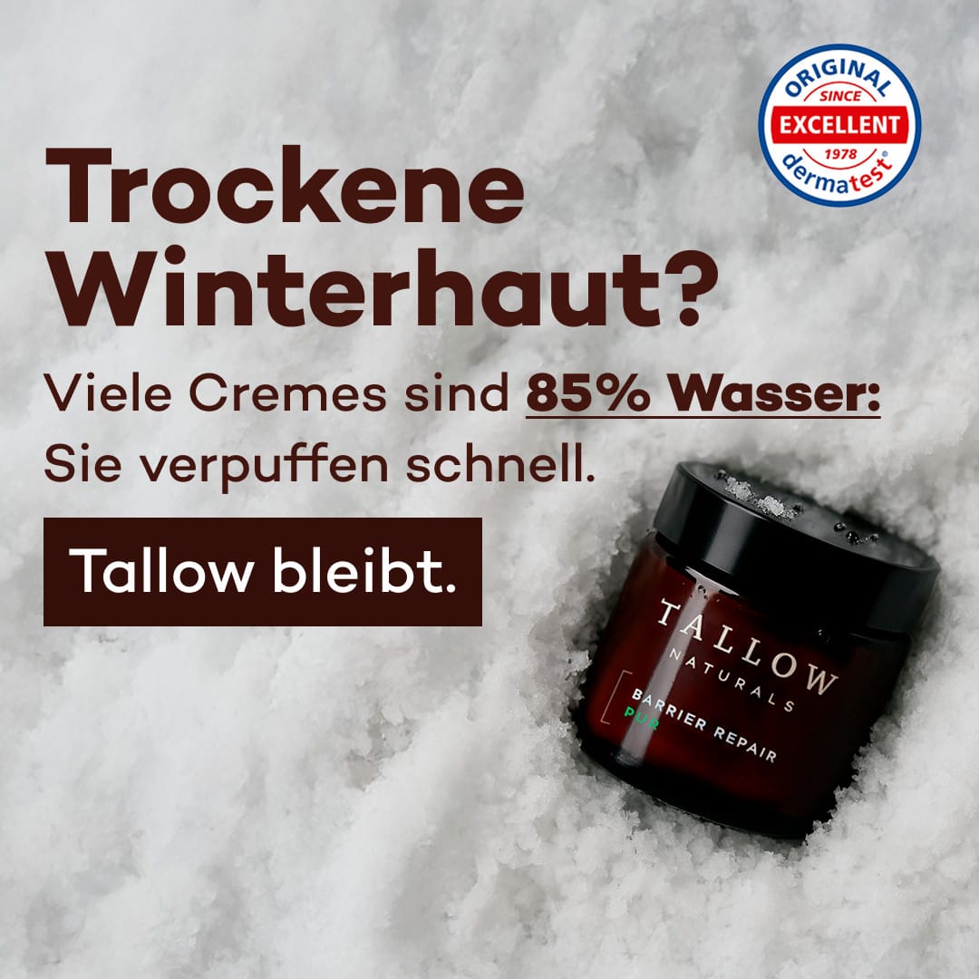 Tallow stärkt deine Haut im Winter ganz natürlich: Hol dir jetzt 25% Rabatt aufs Winterbundle – die perfekte Pflege-Routine für kalte Monate! ❄️🧡